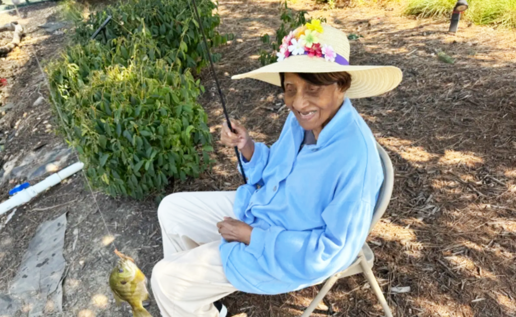 Lucille Noble, resident of Pinnacle Place Memory Care in Little Rock, Arkansas has fished all her life. Why stop now? Staff arranged for a visit to a local pond where Lucille happily cast her line out, bringing back memories, which she happily shared.