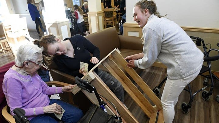 Students from a local high school joined with Chelsea Place Memory Care residents to build special “dog stick” libraries with wooden crates to distribute to dog parks throughout Aurora, Colorado. Their crate building session was written up in the Denver Post. You can read more on this here