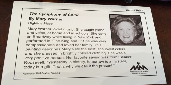 They recently shared some of the amazing artwork produced by residents. Their exhibit included the stories of the artists, one a former Broadway actress!